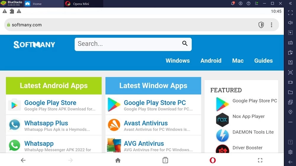 Die Opera Mini App ist nur für Android verfügbar, kann aber mithilfe eines Android-Emulators auf einem PC ausgeführt werden. BlueStacks ist eine der zuverlässigsten Methoden, um Anwendungen auf einen PC oder Laptop herunterzuladen. Mit dem Emulator haben Sie problemlos Zugriff auf alle Android-Anwendungen. Folgen Sie einfach den Anweisungen.
